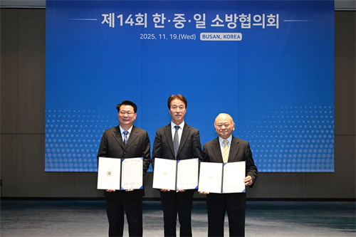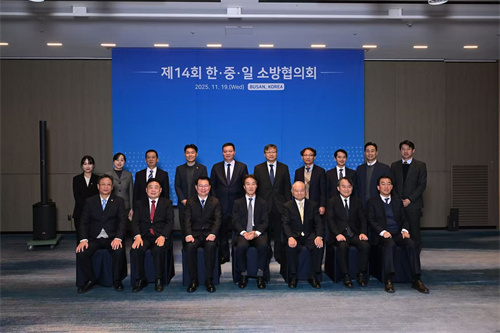 2025年11月19日,中日韓三國消防協(xié)會(huì )第14次聯(lián)席會(huì )在韓國釜山召開(kāi)。中國消防協(xié)會(huì )副會(huì )長(cháng)兼秘書(shū)長(cháng)曹忙根、日本消防協(xié)會(huì )會(huì )長(cháng)秋本敏文、韓國消防安全院理事樸憶祚分別率團參加會(huì )議。