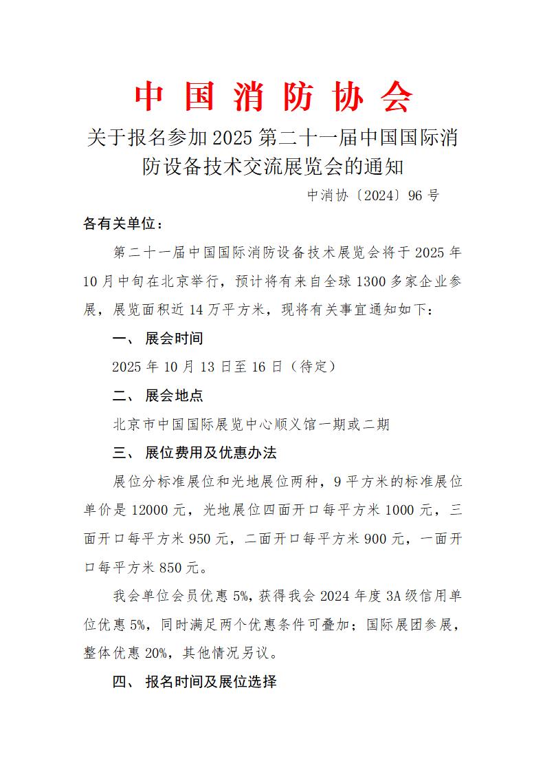 關(guān)于報名參加2025第二十一屆中國國際消防設備技術(shù)交流展覽會(huì )的通知