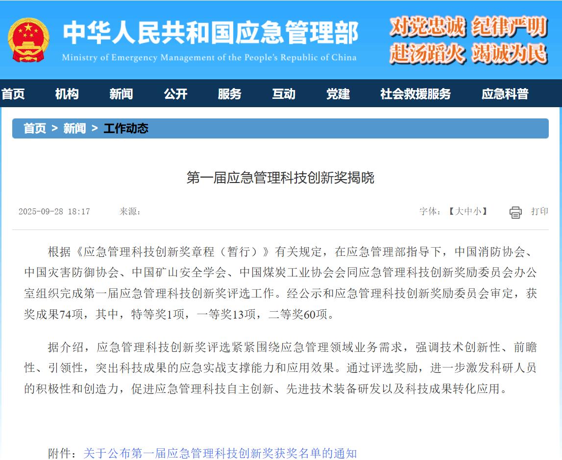 第一屆應急管理科技創(chuàng )新獎揭曉