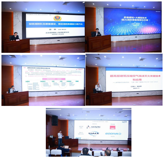 隨后會(huì )議邀請5位專(zhuān)家做專(zhuān)題報告,開(kāi)展學(xué)術(shù)交流。薛林主任委員作了《加快消防隊伍裝備建設,推動(dòng)消防救援能力現代化》專(zhuān)題報告、杭州??低晹底旨夹g(shù)股份有限公司消防行業(yè)總監史佳文作了《多維感知+大模型技術(shù),助力消防裝備智能化升級》專(zhuān)題報告、中國重汽濟南商用車(chē)有限公司專(zhuān)用車(chē)部市場(chǎng)策劃室主任徐法賀作了《消防應急類(lèi)車(chē)輛底盤(pán)發(fā)展及改裝注意事項》專(zhuān)題報告、廣東瑞霖特種設備制造有限公司總經(jīng)理陸兆勇作了《超高層建筑壓縮空氣泡沫滅火關(guān)鍵技術(shù)和應用》專(zhuān)題報告、艾迪斯消防與救援集團總經(jīng)理王濤作了《車(chē)用消防泵安裝使用淺談》專(zhuān)題報告。