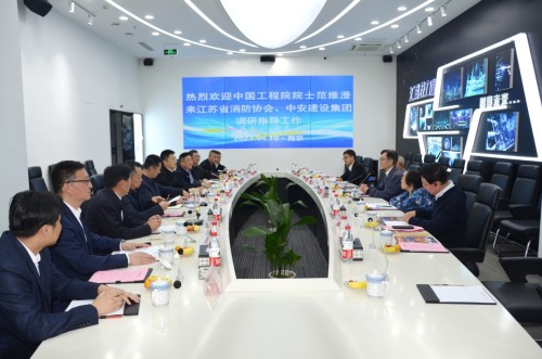 調研過(guò)程中,范維澄院士一行首先來(lái)到江蘇省消防協(xié)會(huì )辦事機構,參觀(guān)協(xié)會(huì )辦公設施,看望全體工作人員,與大家親切交流并合影留念,勉勵大家為消防行業(yè)、公共安全事業(yè)作出貢獻。之后范院士一行參觀(guān)了鼓樓高新區高新技術(shù)開(kāi)發(fā)區、協(xié)會(huì )副會(huì )長(cháng)單位、協(xié)會(huì )會(huì )員之家分部中安建設集團。隨后召開(kāi)調研座談會(huì ),與省消防救援總隊、省科協(xié)、省消防協(xié)會(huì )領(lǐng)導進(jìn)行交流。蔣正林會(huì )長(cháng)對范維澄院士一行的到來(lái)表示熱烈歡迎,對范維澄院士作為《消防安全》雜志學(xué)術(shù)顧問(wèn)對雜志的編輯發(fā)行工作的關(guān)心鼓勵表示感謝,具體匯報了江蘇省消防協(xié)會(huì )的發(fā)展歷程和工作情況及協(xié)會(huì )下一步工作打算。范維澄院士充分肯定江蘇省消防協(xié)會(huì )和會(huì )員企業(yè)在黨和國家事業(yè)發(fā)展過(guò)程中發(fā)揮的積極作用,勉勵省消防協(xié)會(huì )和會(huì )員企業(yè)在國家治理過(guò)程中發(fā)揮積極的作用。