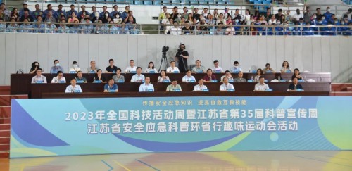 為認真落實(shí)習近平總書(shū)記關(guān)于防災減災救災重要論述,進(jìn)一步增強全社會(huì )對突發(fā)事件的防范意識和應對能力,營(yíng)造人人講安全、個(gè)個(gè)會(huì )應急的良好氛圍,6月8日下午,由省科協(xié)、省應急廳、省國動(dòng)辦、團省委、省衛健委、省住建廳、省紅十字會(huì )、省地震局,省氣象學(xué)會(huì )、省預防醫學(xué)會(huì )、省煤炭學(xué)會(huì )、省安全生產(chǎn)科技學(xué)會(huì )、省燃氣熱力協(xié)會(huì )、省消防協(xié)會(huì )共同組織開(kāi)展的 2023 年全國科技活動(dòng)周暨江蘇省第 35 屆科普宣傳周——江蘇省安全應急科普環(huán)省行趣味運動(dòng)會(huì )活動(dòng)在南京信息工程大學(xué)成功舉辦。南京信息工程大學(xué)校長(cháng)李北群、江蘇省地震局一級巡視員劉建達、共青團江蘇省委副書(shū)記李曉明、江蘇省氣象局副局長(cháng)嚴明良、江蘇省科學(xué)技術(shù)協(xié)會(huì )二級巡視員嚴道明、江蘇省應急管理廳二級巡視員毛尚會(huì )、江蘇省住房和城鄉建設廳二級巡視員高建、江蘇省消防協(xié)會(huì )副會(huì )長(cháng)葛洪正、副秘書(shū)長(cháng)周學(xué)高出席了此次活動(dòng)。