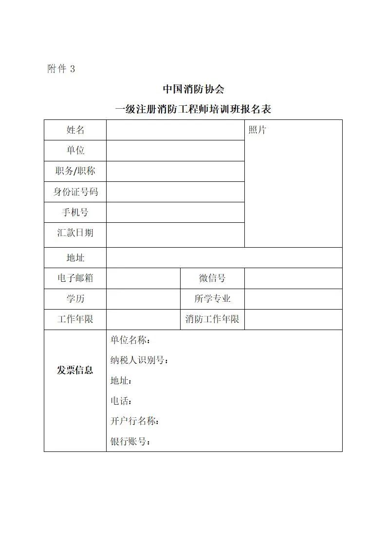為加大消防專(zhuān)業(yè)人才培養力度,拓寬人才培養渠道,培育壯大注冊消防工程師等社會(huì )消防專(zhuān)業(yè)人才隊伍,中國消防協(xié)會(huì )決定舉辦“一級注冊消防工程師”培訓班,請各單位積極報名參加?,F將有關(guān)事項通知如下: