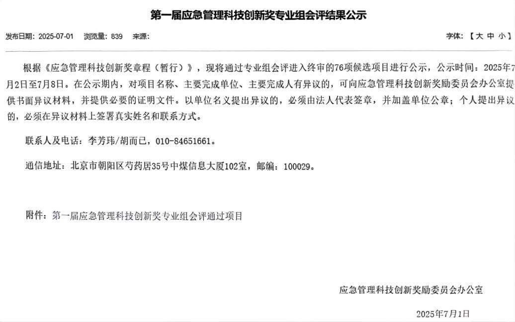 2025年7月1日,應急管理部信息研究院發(fā)布“第一屆應急管理科技創(chuàng )新獎專(zhuān)業(yè)組會(huì )評結果公示”,請點(diǎn)擊http://www.iiem.ac.cn/yuanneidongtai/28587.html 查看。