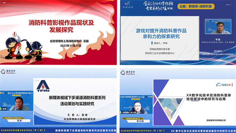 8位報告專(zhuān)家分別圍繞消防科普影視作品創(chuàng )作、新媒體視域下消防科普實(shí)踐、XR數字化應用、消防安全宣傳“五進(jìn)”、新時(shí)期科普思考等內容進(jìn)行分享和交流,現場(chǎng)討論氛圍十分熱烈,瀏覽、觀(guān)看、參與話(huà)題人員突破500萬(wàn)。