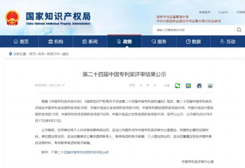日前,國家知識產(chǎn)權局官網(wǎng)公示了第二十四屆中國專(zhuān)利獎獲獎名單,我會(huì )推薦的兩項發(fā)明專(zhuān)利喜獲優(yōu)秀獎。