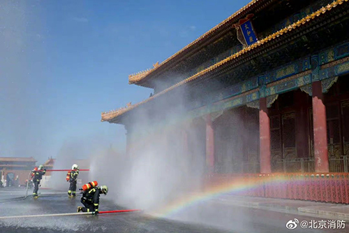 水球,從上向下全角度(環(huán)形)噴射,可以起到濕化保護,防止火勢蔓延。針對古建筑火災,可以有效減小高壓直流水對木質(zhì)結構的沖擊力,保護古建筑結構穩定。