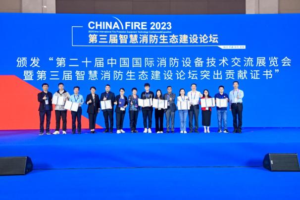 本屆論壇由中國消防協(xié)會(huì )主辦,蘇州國網(wǎng)電子科技有限公司、北京泰普瑞認證服務(wù)有限公司、北京伊思諾會(huì )展服務(wù)有限公司承辦。北京泰普瑞認證服務(wù)有限公司聯(lián)合19家從業(yè)企業(yè)發(fā)出了智慧消防生態(tài)建設倡議書(shū),共同登臺舉行了聯(lián)名簽署儀式。主辦方有關(guān)業(yè)務(wù)負責人為安普科技有限公司、杭州昱安科技有限公司、南京六域知物科技有限公司、青島同人建筑防火有限公司、上海瑞眼科技有限公司、蘇州思迪信息技術(shù)有限公司、蘇州易觀(guān)黑洞智能科技有限公司、武漢拓寶科技股份有限公司、陜西拓普索爾電子科技有限責任公司、上海盛善電氣有限公司、廣州創(chuàng )宏信息科技有限公司、北京泰普瑞消防技術(shù)研究院、蘇州國網(wǎng)電子科技有限公司、歐普照明股份有限公司、大疆行業(yè)應用、深圳市海明科信息技術(shù)有限公司、浙江中辰城市應急服務(wù)管理有限公司、中安工業(yè)互聯(lián)網(wǎng)(成都)有限公司、北京伊思諾會(huì )展服務(wù)有限公司等19家企業(yè)頒發(fā)了突出貢獻證書(shū)。